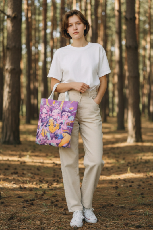 K-pop Demon Hunter tote bag, Huntrix Mia, Zoey, Rumi characters with zipper kpop