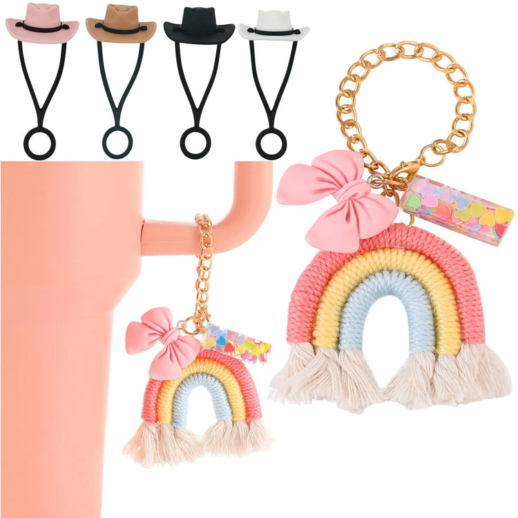 Stanley Cup Accessories Set-Woven Water Bottle Handle Strap Siliocne Stanley Cup Boot Stanley Charms for Stanley Cup 40oz Tumbler,Straw Cover Cap(White)